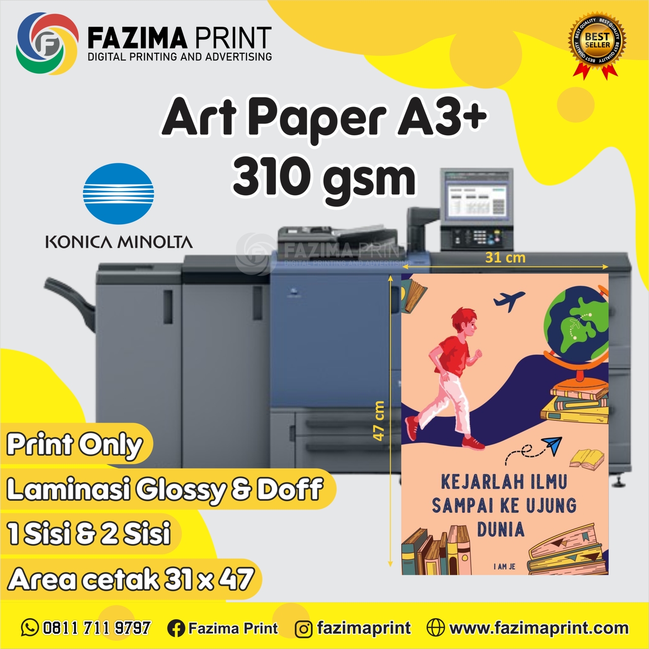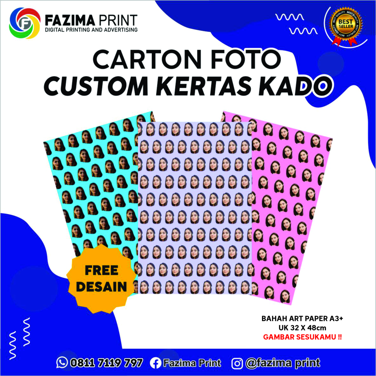 Luar biasa pake banget ,,saya diluar kota bisa pesen dan bisa titip dipaketkan sekalian pula,,keren deeh.makasih service excellent nya,,, sukses terus FAZIMA Print